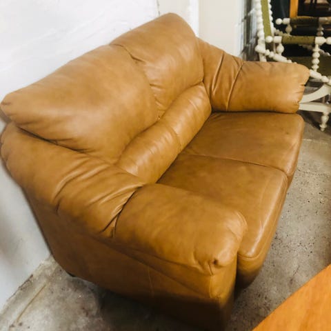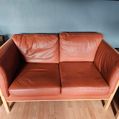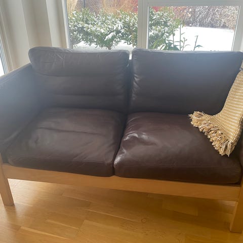 Sort lædersofa til to personer. Brugt og med patina, men helt som det skal være!