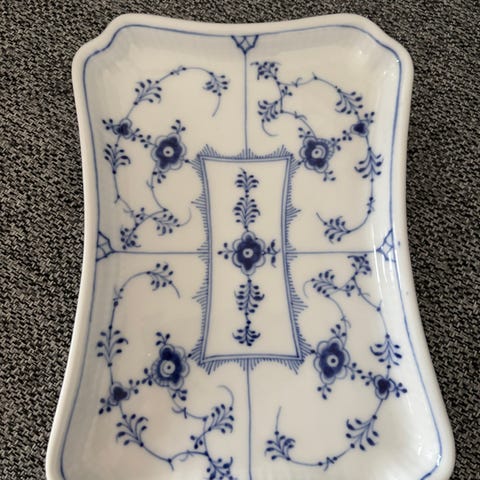 Royal Copenhagen rektangulært fad hvid med blå dekoration