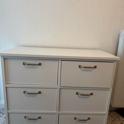 Næsten helt ny kommode sælges da den ikke skal bruges alligevel. Fremstår som nyt flere billeder kan fremsendes. Det står tørt og sikkert opbevaret kun taget ud for at tage billeder. Ny prisen var 1200kr mener jeg