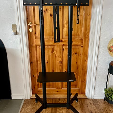 TV møbel / TV stativ / TV stander. Stål. Passer til 32-65 tommer TV. Inkl. låsbare hjul og justerbare fødder. B100 x H116 x D55 cm.