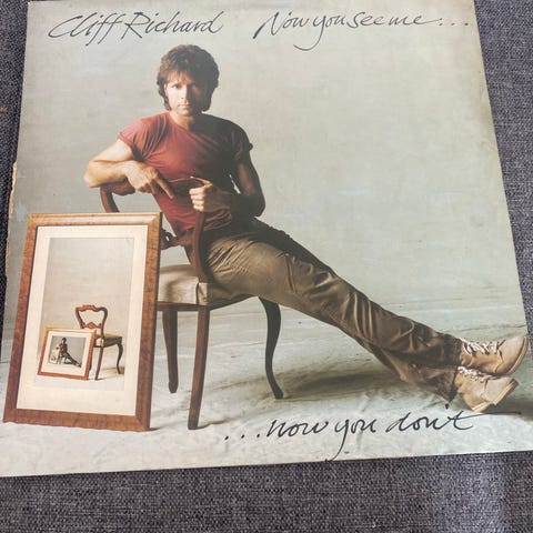 Cliff Richard "Rock On With Cliff Richard" lp. Vinylplade med samling af numre, herunder blandt andet "Living Doll", "Do You Want To Dance" og "Move It". Cover med for- og bagsideillustration samt trackliste på bagsiden. Egnet til afspilning på pladespiller, til samling af Cliff Richard-udgivelser eller som del af en generel vinylsamling.