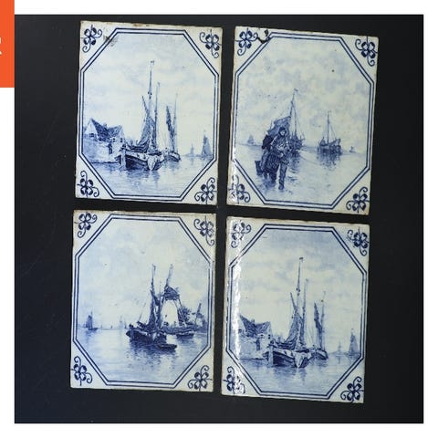 Fliser, Malet, Sælger 3 stk fliser med tegning og historie