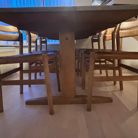 Udført i massiv eg med klassisk Mogensen-konstruktion og slædeben.