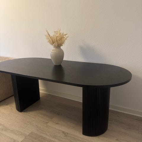 Flotteste oktagonale spisebord med en ø på 120 cm. Sprøjtelakeret i en smuk lys blå farve (højglans). Bordet har to ekstra indsats plader så det kan forlænges. Bordet har små skrammer langs kanterne og er brugt, men stadig i virkelig flot stand og alternativt ville det kunne sprøjtelakeres igen. Sælges kun fordi vi ikke har plads til det i ny lejlighed. Hentes i en stue lejlighed i indre by.