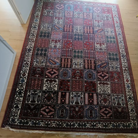 Iranske ægte håndknytte tæppe Kilim Flotte farver i god stand Mål: 150x84 cm Pris: 750kr Kan altid vaske med vaskemaskine, kold vand men skal man ikke bruge klorin! Kan fragtes mod betaling 🚛 Har flere tæpper til salg så kig på mine opslag. For mere info skrive eller ring.