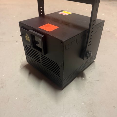 Laser RGB 2 watt, Enheden har bærehåndtag/beslag til ophæng, ventilationsgitter på siden og betjeningspanel,