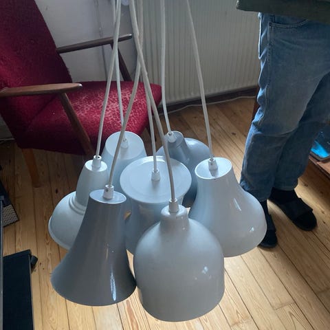 Sælger disse tre lamper af ukendt mærke. De har være del af et musiksted og har et cool look og anderledes detaljer. De sælges enten enkeltvis eller samlet. Prisen er 700 kr. pr. styk.