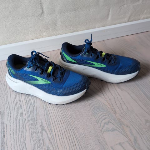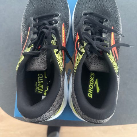 Trail løbesko fra Brooks i goretex. Helt sort. Brugt, og har hul ved ankler indvendigt(se billeder) dog stadig i fin stand men mange kilometer endnu.