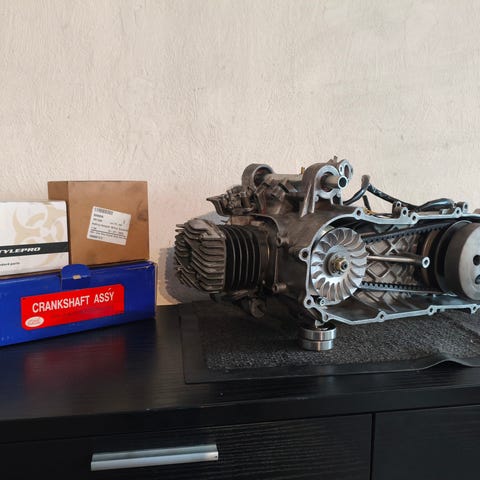 Der er lige skiftet flere sliddele i motoren, og den starter og kører godt. Alt virker, også elstart.