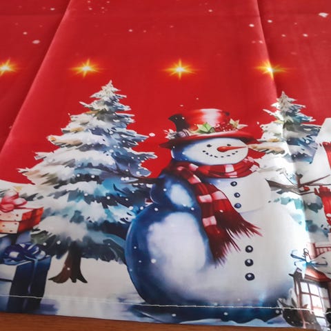 Rød juledug med nisser måler: