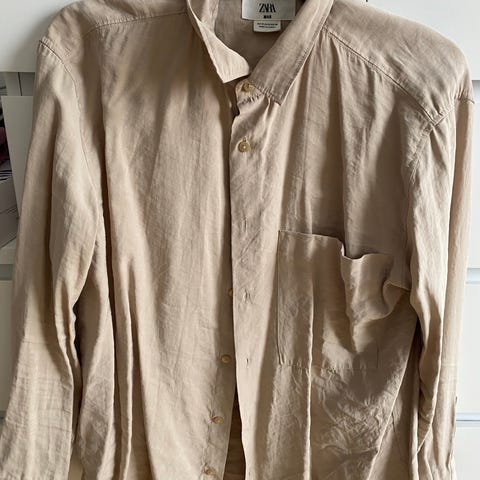 Lækker flødefarvet skjorte med sorte og hvide striber fra Zara. Super godt fit, fejler ikke noget. Striberne kan se lidt blå ud på første billede, men de er sorte.