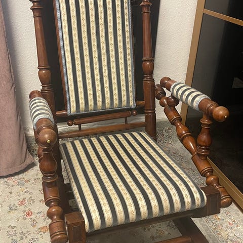 Eksklusiv hængestol i guldlook med blå velourhynder
