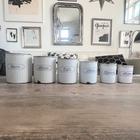 Emaljedåser med låg. De har en smule patina.
