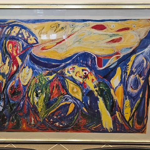 Meget flot sælunge i glasramme. Måler 60 x 75 cm. Det er svært at tage billede uden der kommer skygger på glasset.