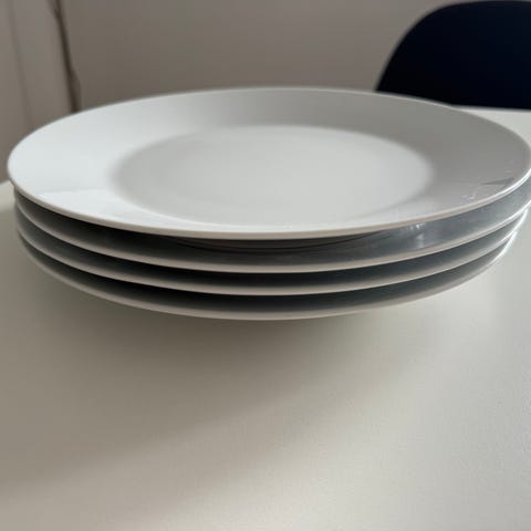 Sælger 4 stk. IKEA “Gladelig” middagstallerkener i perfekt stand - aldrig brugt og som nye. Flot og tidløst design, der passer til både hverdag og gæster.