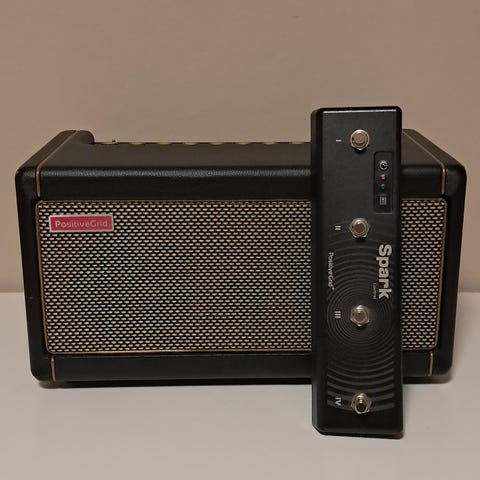 Positive Grid Spark 2 guitarforstærker med trådløst system og Spark Control footswitch.
