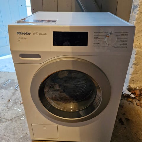 Miele frontbetjent vaskemaskine og tørretumbler i hvid.