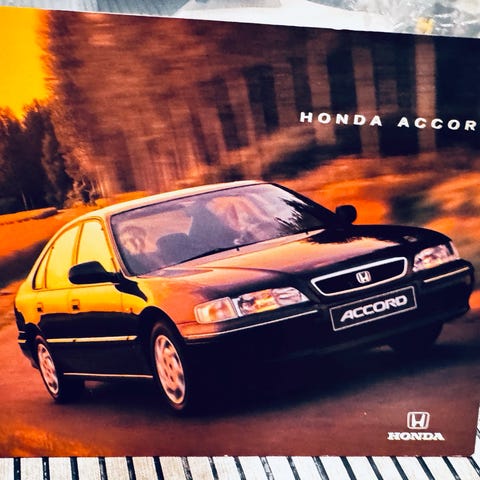 Honda Civic 5-dørs salgsbrochure. Trykt brochure med billeder og tekst, der beskriver Honda Civic 5-dørs model, eksteriør, interiør og tekniske detaljer. Indeholder farvefotos af bilen udefra og indefra samt information om udstyr og specifikationer for modellen.