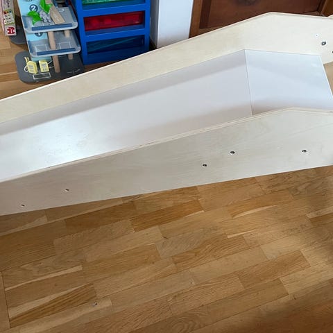 Pæn og velholdt rutschebane. Husker ikke mærke - måske Flexa. Monteres nemt med kroge ved sengekant. Vi har haft monteret den på anden seng, hvorfor man kan se huller. Dog uden betydning. Ikke brugt meget og derfor i god stand.