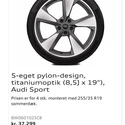 Sælger et sæt (4 stk) 19” alufælge med monterede sommerdæk, som tidligere har siddet på en Audi A5 Quattro.