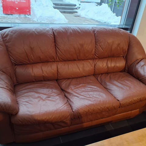 Sidste chance. Sofaen har et behageligt design med polstrede armlæn og en blød læderoverflade. 2 personers.,Afhentes i:,Røde Kors Virum (173),Bemærk at mail, chat og beskeder ikke besvares, og varen skal købes på knappen "Gå til varen"