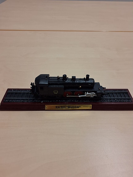 Modellen viser en detaljeret damplokomotiv i metal med træbaseret sokkel.,Afhentes i:,Røde Kors Aalborg (851),Bemærk at mail, chat og beskeder ikke besvares, og varen skal købes på knappen "Gå til varen"
