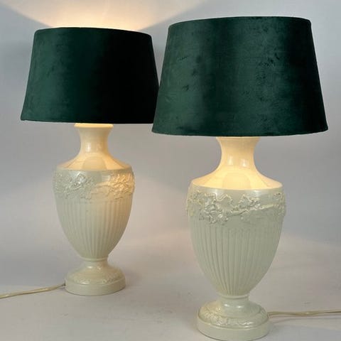 En enkelt mørkebrun stentøjs bordlampe med krokodillelook-lyse og dateret 1960–1970, hvid glasur med gyldent indvendigt, oprindelse Nederlandene, i god brugt stand, med én fatning og vægt 5 kg. Klik på den blå "gå til varen" knap, for at købe eller byde på denne vare. Den samlede pris vil blive vist inden du afgiver dit bud.