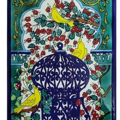 Portugisisk håndmalet flise‑vægmaleri, keramik, i god stand, smukke farver, vase med blomster, portugisisk, bliver godt pakket og sendt, 6 stk., danner en helhed,