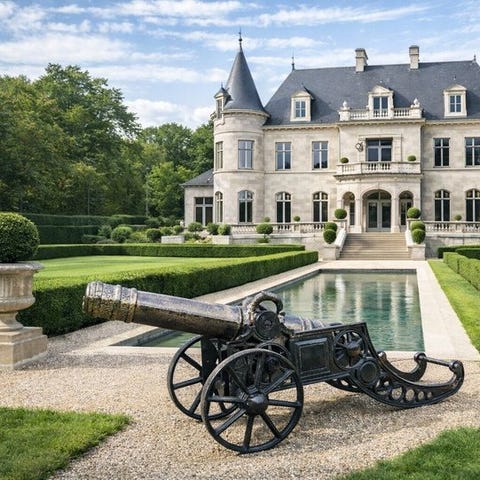 En enestående og imponerende støbejernskanon med en samlet længde på 155 cm, præsenteret som et kraftfuldt statementsstykke til luksushaver eller ejendomme. Rig på historisk karakter og håndværk; denne kanon tilføjer pragt og eksklusivitet til enhver château-inspireret villa eller et anlagt landskabsområde. Et sjældent dekorativt objekt, der straks fanger opmærksomheden og formidler styrke, arv og elegance. Ideel for samlere eller som et dristigt arkitektonisk haveelement.