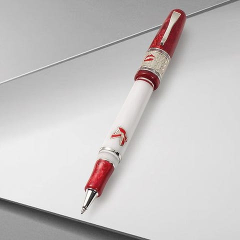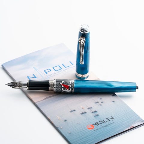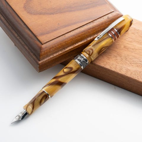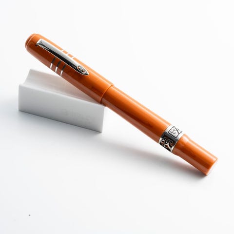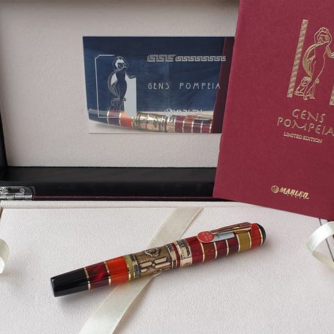 Marlen Pens præsenterer den post-2000 begrænsede udgave L'Armonia di Leonardo (da Vinci) L.E. med 388 eksemplarer, en italiensk fyldepen i casein, resin, bronze og kobber, ny og i funktion. Klik på den blå "gå til varen" knap, for at købe eller byde på denne vare. Den samlede pris vil blive vist inden du afgiver dit bud.