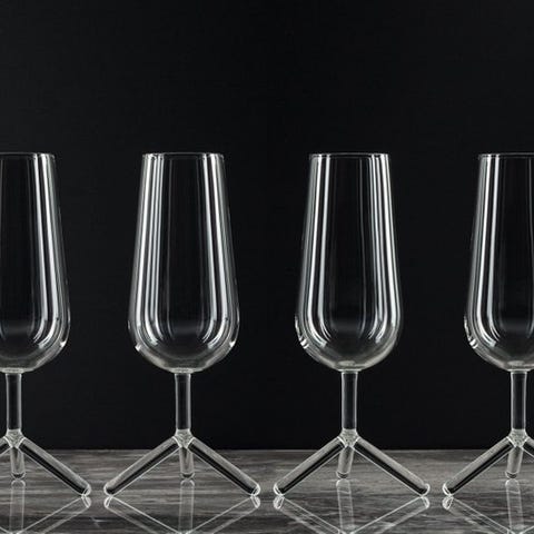 Forhøj din drikkeoplevelse med dette sæt på fire tripodglas lavet af udsøgt halvt gennemsigtigt lavendelfarvet blå borosilikatglas, formet som det klassiske champagneglas. Udover at være en elegant beholder til din yndlingscocktail, gør disse glas også en unik præsentation for blomsterarrangementer.