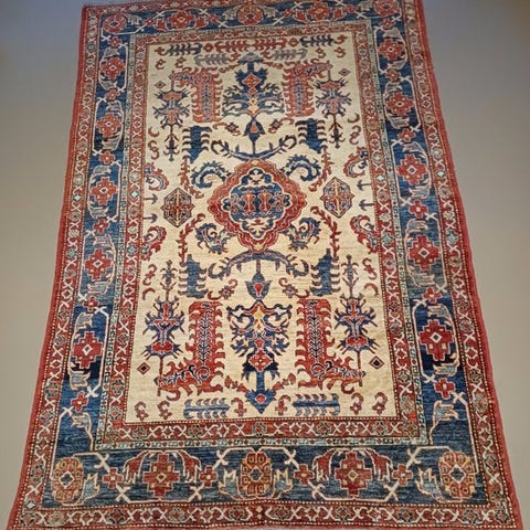 Uld af topkvalitet. Dette tæppe er vævet i Afghanistan med uld af høj kvalitet.