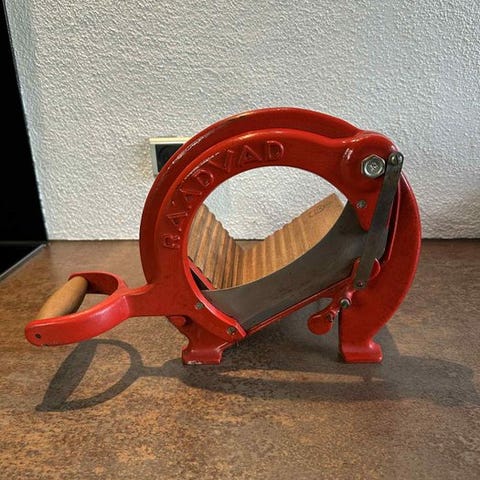 Bemærk venligst: brødskæreren mangler en skrue, men den fungerer stadig som tiltænkt!