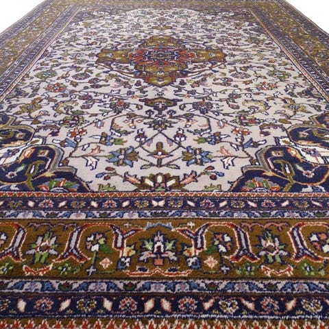 Indien oprindelse Nyt høj kvalitets Tabriz uld og silke Mahi tæppe, 183 x 125 cm, i meget god stand, professionelt rengjort, lavet af uld og silke på bomuldsgulv, 21. århundrede, ca. 325.000 knuder pr. m². Klik på den blå "gå til varen" knap, for at købe eller byde på denne vare. Den samlede pris vil blive vist inden du afgiver dit bud.