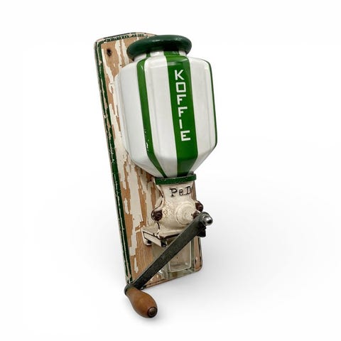 Et autentisk og dekorativt objekt, der egner sig til elskere af antikt køkkengrej, kaffehistorie eller landlige interiører.
