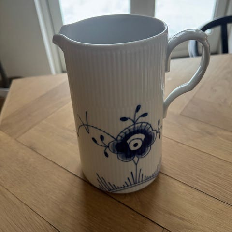 Blå Mega Riflet 90 cl. kande i porcelæn fra Royal Copenhagen . Den er i fin stand uden skår og revner. Kanden er en 2. sortering. Sender gerne + 50 kr. har fravalgt fix-færdig 23918466