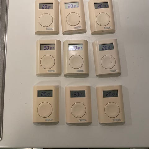 Wavin 8000 master enhed og 5stk room føler er kodet ind kan os nulstilling ske ved købet sender for 60kr med gls Fast pris sælges samlet
