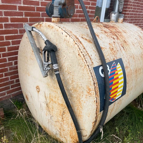 Helt ny Thyholm Olie Service olietank 1200 liter opsat december 2025, egnet til udendørs opstilling. Olietanken er udført som en fritstående ståltank med afrundede ender og flere påfyldnings- og inspektionsstudse på toppen. Monteret typeskilt fra Thyholm Olie Service A/S på siden af tanken. Velegnet til opbevaring af fyringsolie i forbindelse med oliefyringsanlæg, hvor der er behov for en robust ståltank placeret op ad bygningens ydermur.