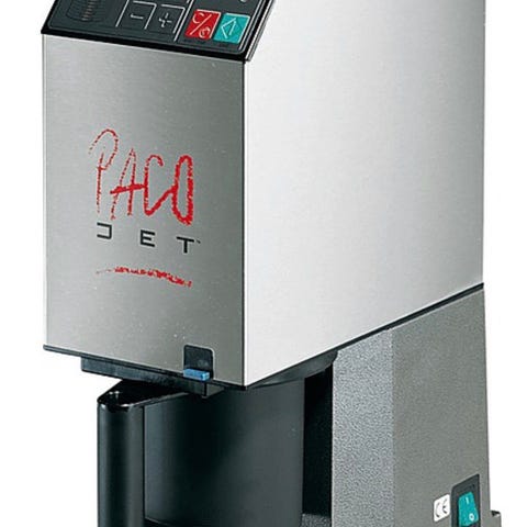 Pacojet maskine i rustfrit stål. Professionel køkkenmaskine til finpurering og tilberedning af frosne og friske råvarer i portioner. Enheden har digital betjeningsdel på fronten og er udført med kabinet i rustfrit stål og sort bund. På billederne ses flere medfølgende rustfri beholdere samt tilbehør som knivindsats og låg. Maskinen tilsluttes via strømledning på bagsiden med tænd/sluk-knap. Velegnet til professionelt brug i køkken, restaurant eller catering, hvor der arbejdes med is, sorbet, mousser og puréer.
