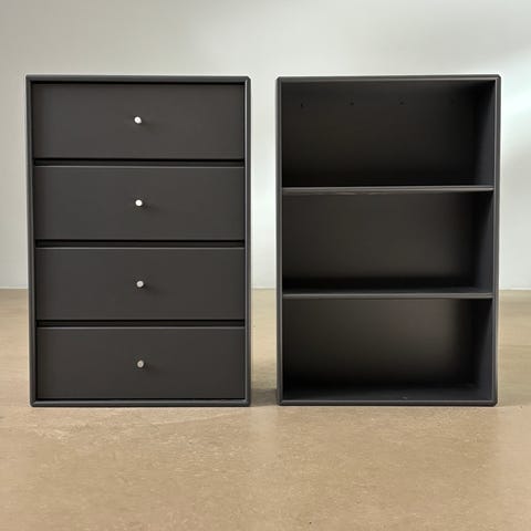 i den farve, Montana kalder Ginza pink. Modulet er uden ophæng. Velholdt med få mindre brugsspor. Der følger en lav sokkel med i samme farve