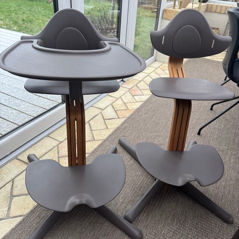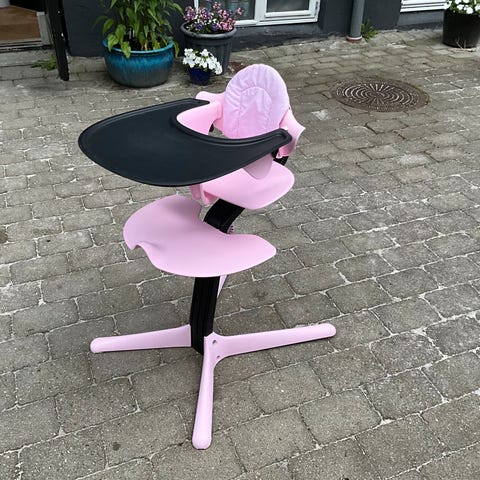 Stokke Nomi højstol i valnød og sort. Der medfølger: