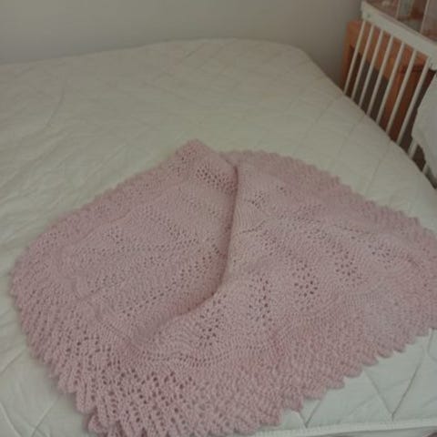 Det er opskriften fra Marys baby Tæppe. De er meget smukt strikkede af min veninde. De er i Uld Og Silke. Man kan nemt vaske dem i uldvaskemiddel og de bliver som nye de er faktisk som nye. Størrelsen er cirka 1 m gange 1 m. Det kan bruges til baby Tæppe eller til sjal. Det er dejligt at have med ud en aften og det er køligt både sommer og vinter. Du er velkommen til at komme og se det fordi de er meget meget flotte min ven veninde strikker professionelt. Jeg vil gerne bede om 1000 kroner stykket. Alene garnet har kostet 600 kr. Skriv til mig så sender jeg dig mit telefonnummer og så kan vi ringe sammen. Venlig hilsen Regitze
