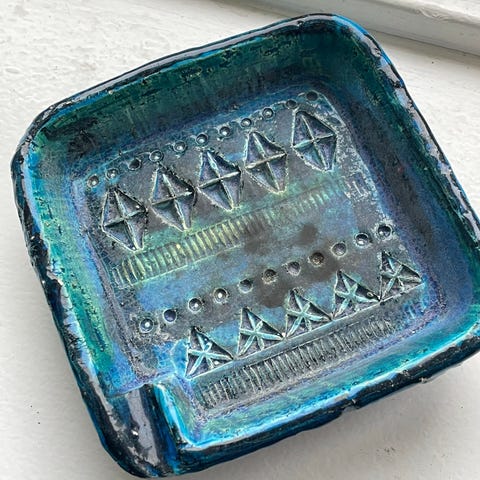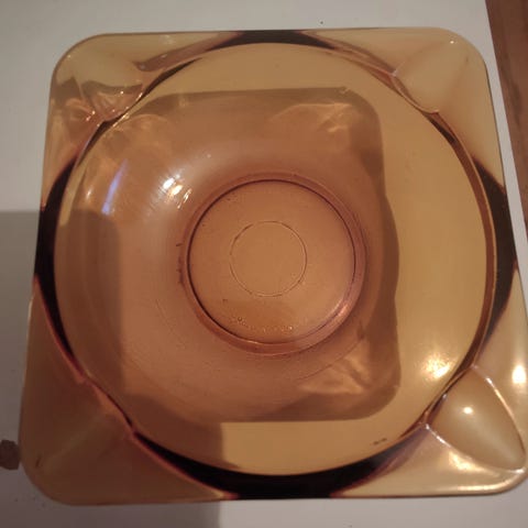 Ferrari askebæger i gul keramik. Rund model med fire cigaretriller og sort Ferrari-hest i bunden. Ydersiden har påtryk med blandt andet “Hors Ligne”, “Only Authorized Original Trade Mark Ferrari”, “Concessionario” og “Maranello – Via Dino Ferrari”. Velegnet som askebæger eller som dekorativt samlerobjekt. Vintage.