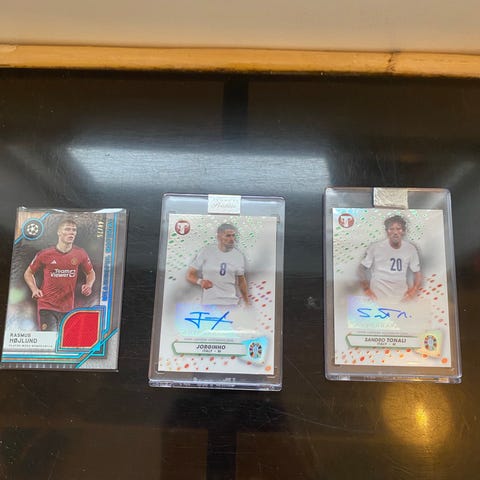 Topps Euro 2024 fodboldkort med Lamine Yamal fra Spaniens landshold. Kortet viser spilleren i landsholdstrøje på forsiden og har spillerinformation og statistik på bagsiden. Egnet til samling og opbevares i hård plast-holder, som ses på billederne.