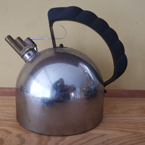 Sælger denne smukke og noget anderledes kedel udført i rustfrit stål med plads til 2 liter.
