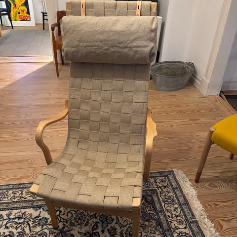 Bruno Mathsson loungestol med lyst træstel og lys flet