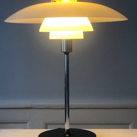 Poul Henningsen PH80 bordlampe med plastikskærme. Lampen er fra 1990'erne og fremstår i god stand med alle skærme intakte og med et par små ridser. •Designer: Poul Henningsen •Producent: Louis Poulsen •Produktions år: 1990'erne •Model: PH80 •Mål: Højde: 67 Diameter: 55 Cm •Materialer: Plastikskærme •Stand: Brugt Poul Henningsen PH80 bordlampe fra 1990'erne.