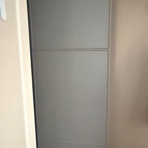 IKEA PAX garderobeskab med skydedøre og med hylder, skuffer og trådkurve i det ene skab og to bøjlestænger + hylde i det andet skab. Skabet fungerer som det skal. Det har fået en skramme på forsiden af den ene skydedør som ikke er forsøgt udbedret (se billede nr. 4). Skal afhentes på Nørrebro senest lørdag d. 14. februar grundet flytning.