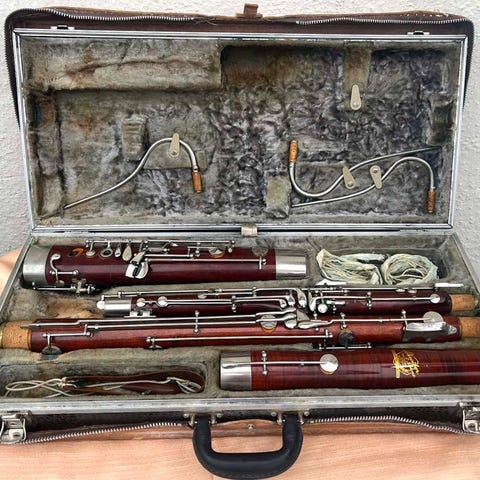 Jeg sælger fagotten for min far, der er pensioneret professionel fagottist. Den befinder sig hos mine forældre nær Faaborg, hvor den selvfølgelig kan beses og afprøves.