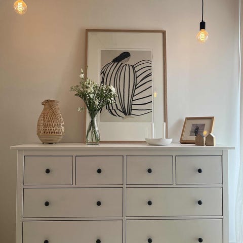 IKEA Hemnes kommode med 3 skuffer i sort træ. Kommoden står på ben og har enkle runde håndtag på alle skuffer. Velegnet til opbevaring i soveværelset, stuen eller gangen, hvor der er behov for ekstra skuffeplads til tøj, tekstiler eller andre ting.